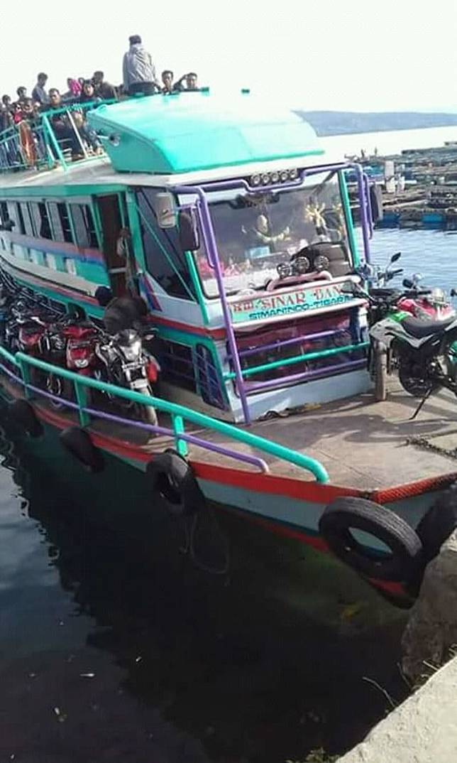 Kapal rakyat itu membawa penumpang melebihi kapasitas dan tidak dilengkapi alat keselamatan yang memadai. Sebanyak 24 orang telah ditemukan, di antaranya 21 orang dinyatakan selamat, dan tiga orang meninggal dunia.KM Sinar Bangun. (Foto: Dok. istimewa)