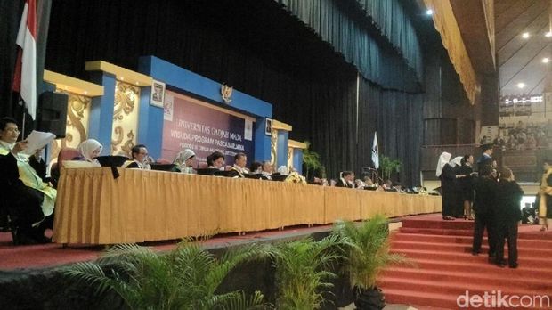 Ia mengikuti wisuda pascasarja UGM yang digelar hari ini di Grha Sabha Pramana (GSP). Ia di wisuda bersama 1.369 wisudawan lulusan pascasarjana yang terdiri 1.213 lulusan Magister, 88 Doktor, dan 68 Spesialis,